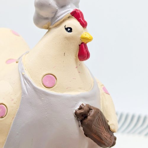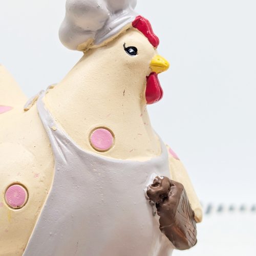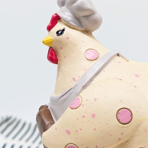Adorable chicken figurine wearing a chef’s hat