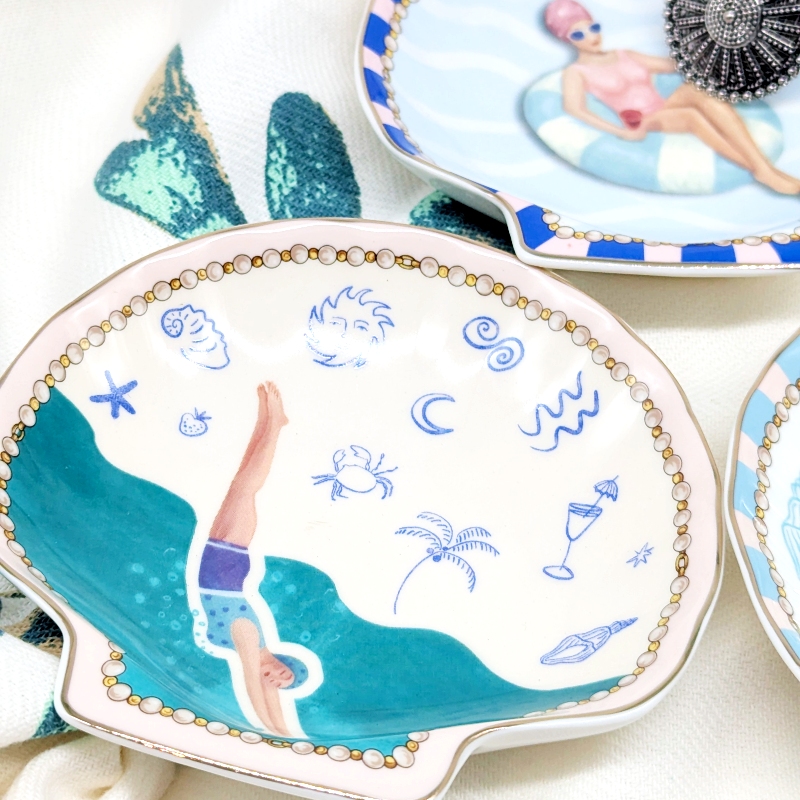 Add a touch of seaside charm to your space with this Diving Coastal Ceramic Trinket Dish. Inspired by ocean vibes and carefree coastal living, this beautifully crafted dish features a playful diving motif that instantly brings a relaxed, beachy feel to any room.
