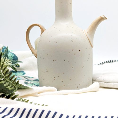 Categories: Food Prep, Kitchen Accessories & Tablewares, Moroccan Tags: ceramic oil bottle, ceramic vinegar, countertop decor, earthy oil bottle, farmhouse kitchen, handmade style, Kitchen Gift Idea, kitchen oil bottle, minimalist kitchen, modern farmhouse, natural kitchen decor, olive oil bottle, rustic kitchen decor