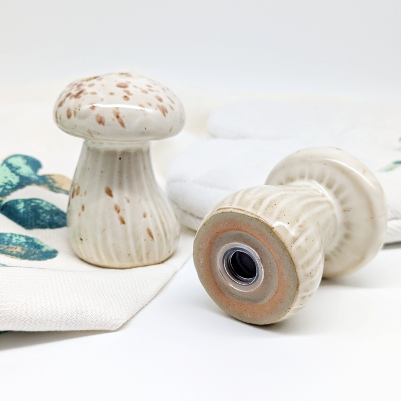 Earthy Mushroom Salt Pepper Shaker Set is perfect for not leaving any trace of messy excess seasoning on the table or in the kitchen.