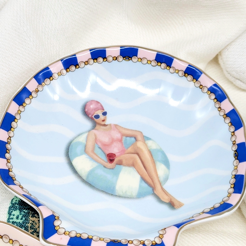 Floating Pool Girl Ceramic Trinket Dish