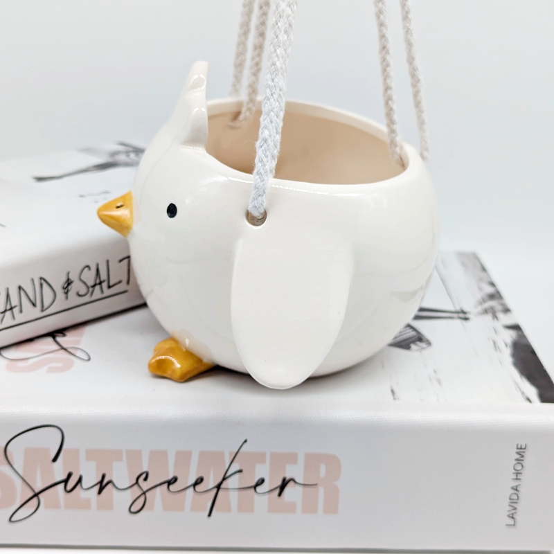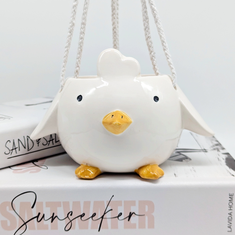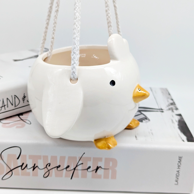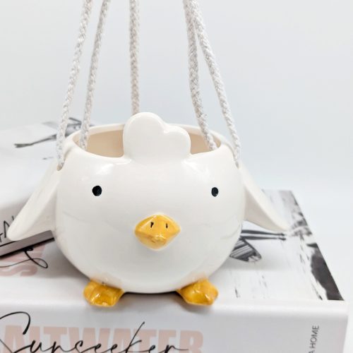 Exhibit your love for greenery in your home or garden with this contemporary style Hanging Chick Ceramic Planter Pot.