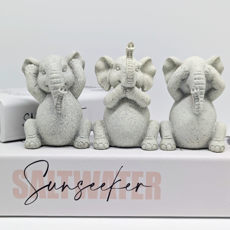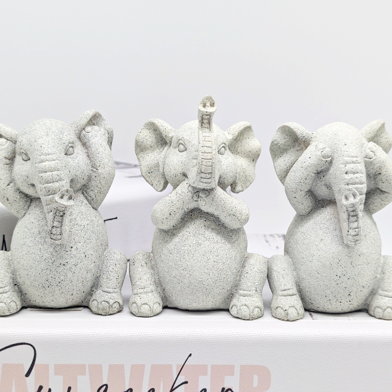 • Features three resin elephants statues in a no evil see, no evil speak and no evil hear posture