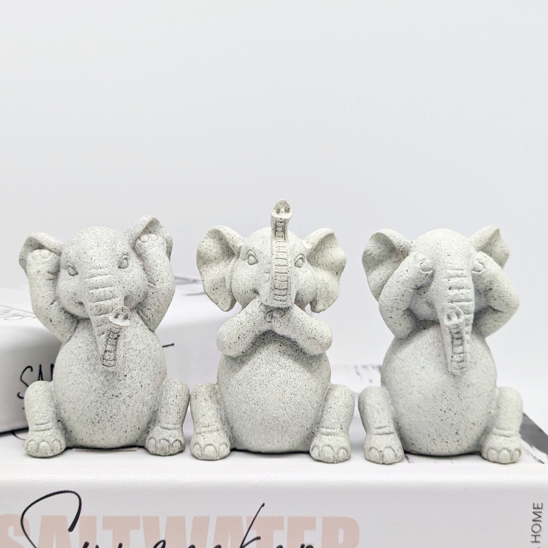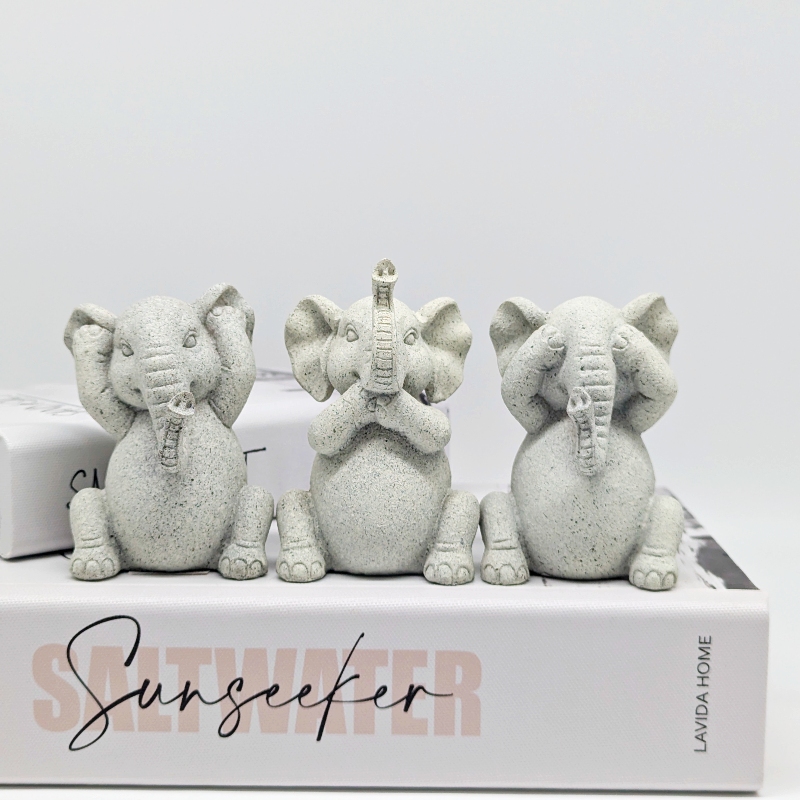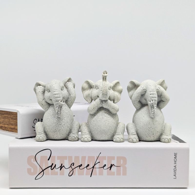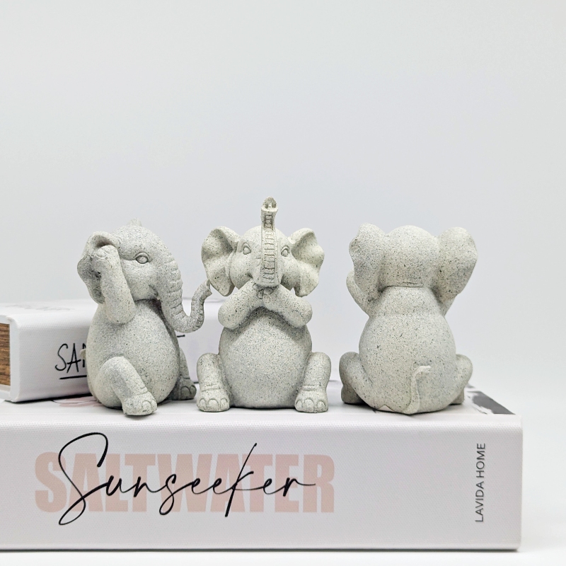 Add a little touch of animal theme modern decor to your home with these No Evil See Hear Speak Grey Elephant Figurines Set.