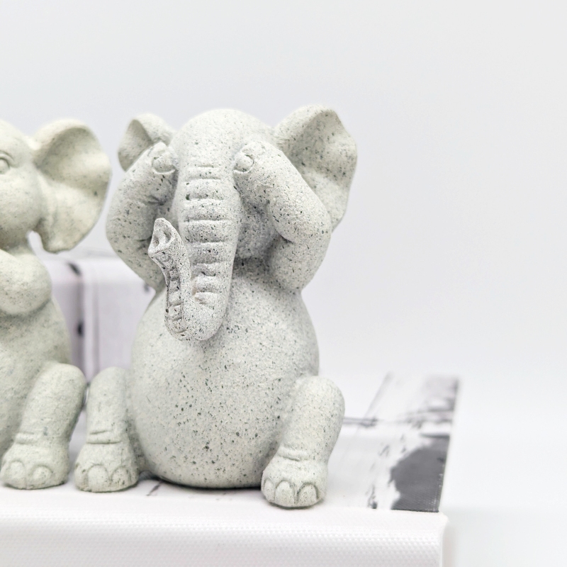 • Stunning and modern 3 wise elephants figurine in grey colour