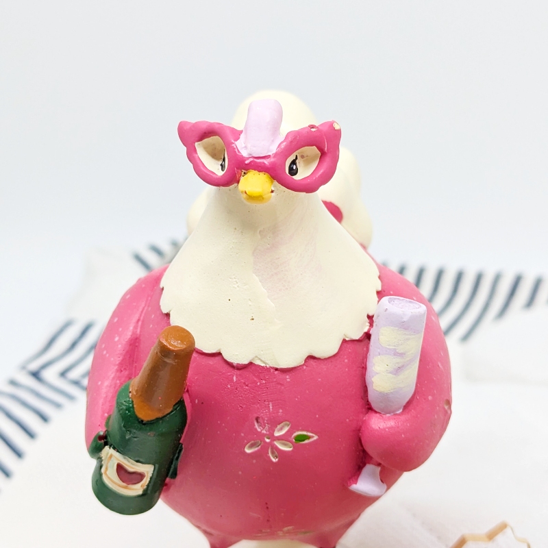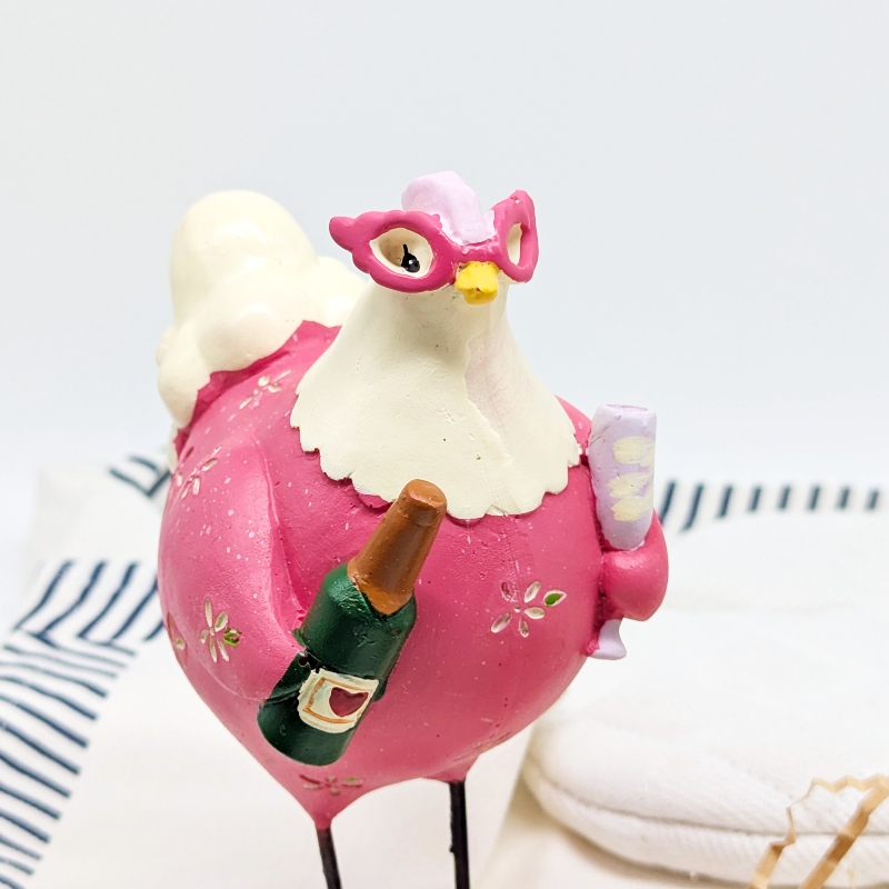Turn up the fun with this Party Girl Chicken Figurine! Full of personality and dressed to impress, this playful chicken figurine brings sparkle, sass, and good vibes to any space. It’s the perfect décor piece to add a cheerful, light-hearted touch to your home.