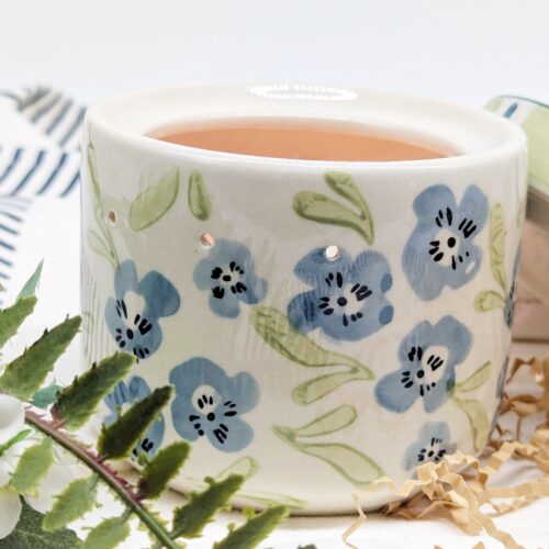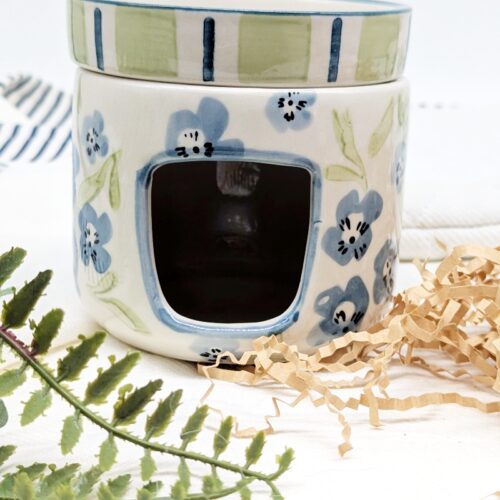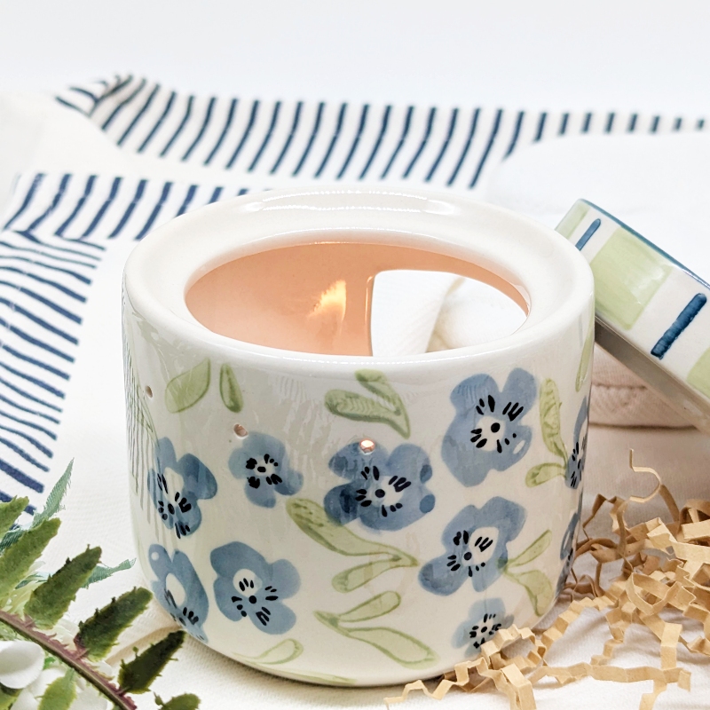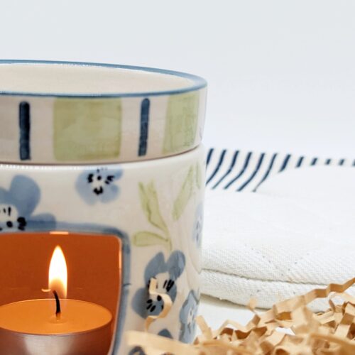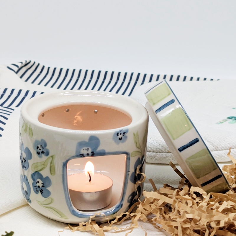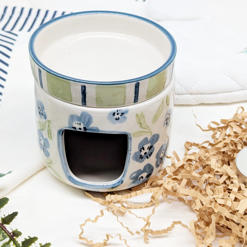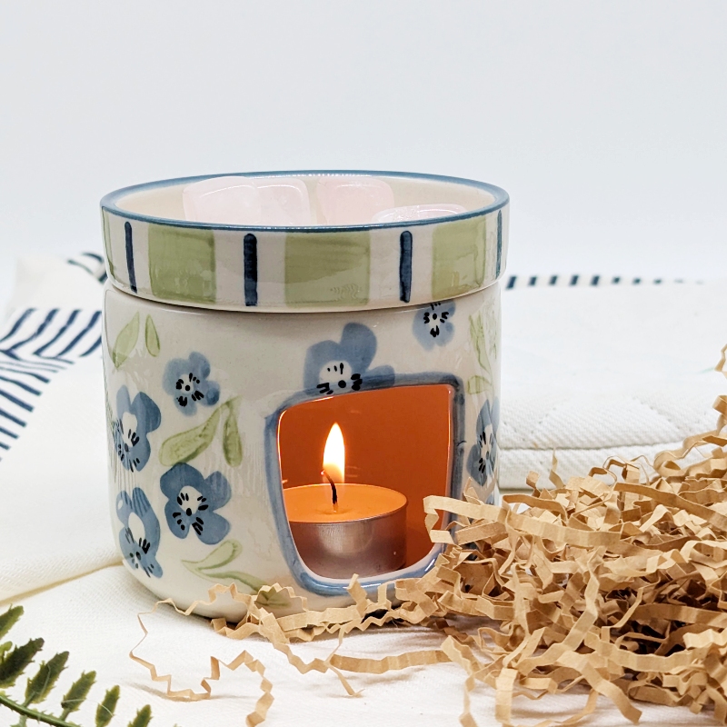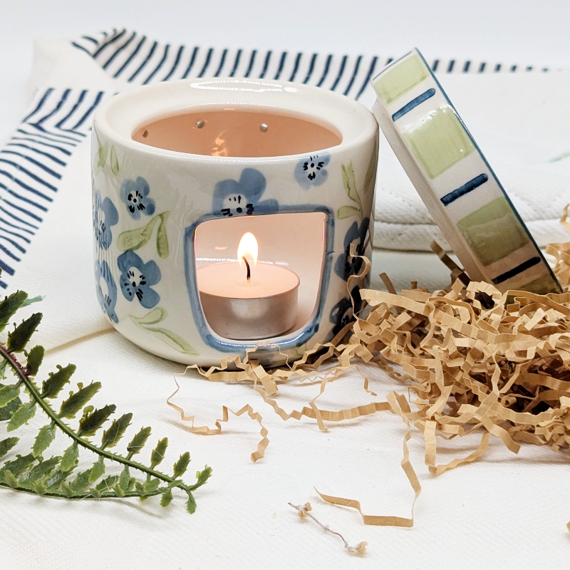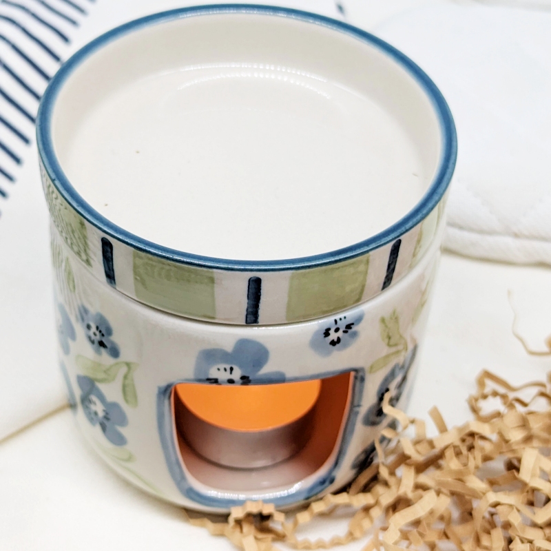 Create a calm and soothing atmosphere with this Sage Blue Floral Oil Burner Wax Melter. Featuring a beautiful floral design in soft sage and blue tones, this piece adds a gentle decorative touch while filling your space with your favourite fragrances.