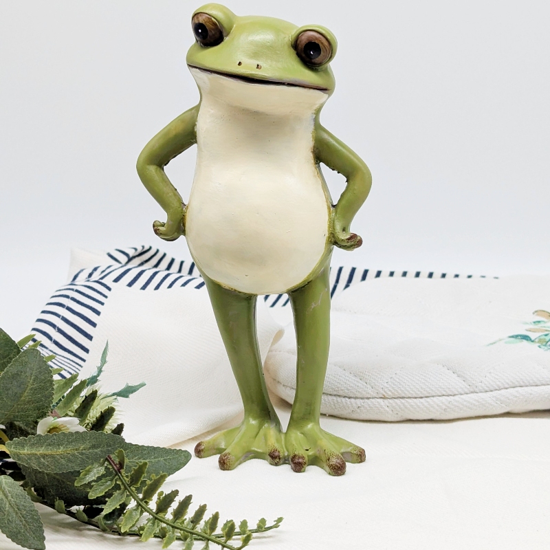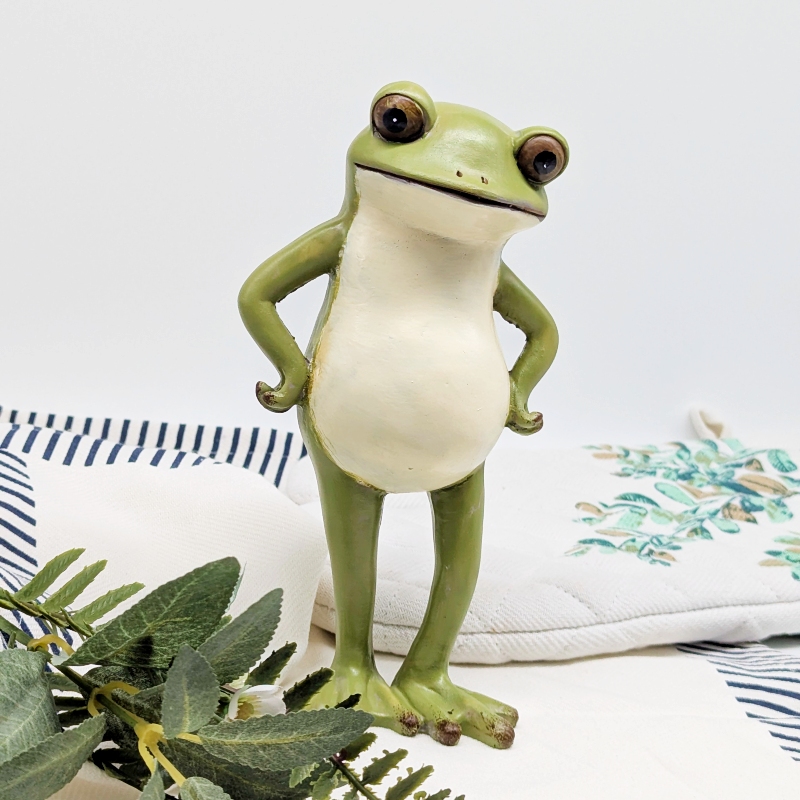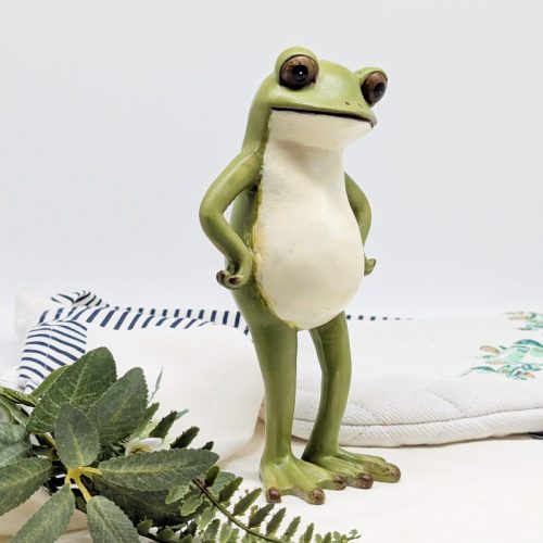 Categories: Statues & Ornaments, Urban Living Tags: animal figurine, collectible frog, desktop frog ornament, frog lover gift, frog ornament, frog shelf decor, garden frog figurine, green frog figurine, nature-inspired décor, playful home decor, quirky home accent, standing frog decor, whimsical home decor