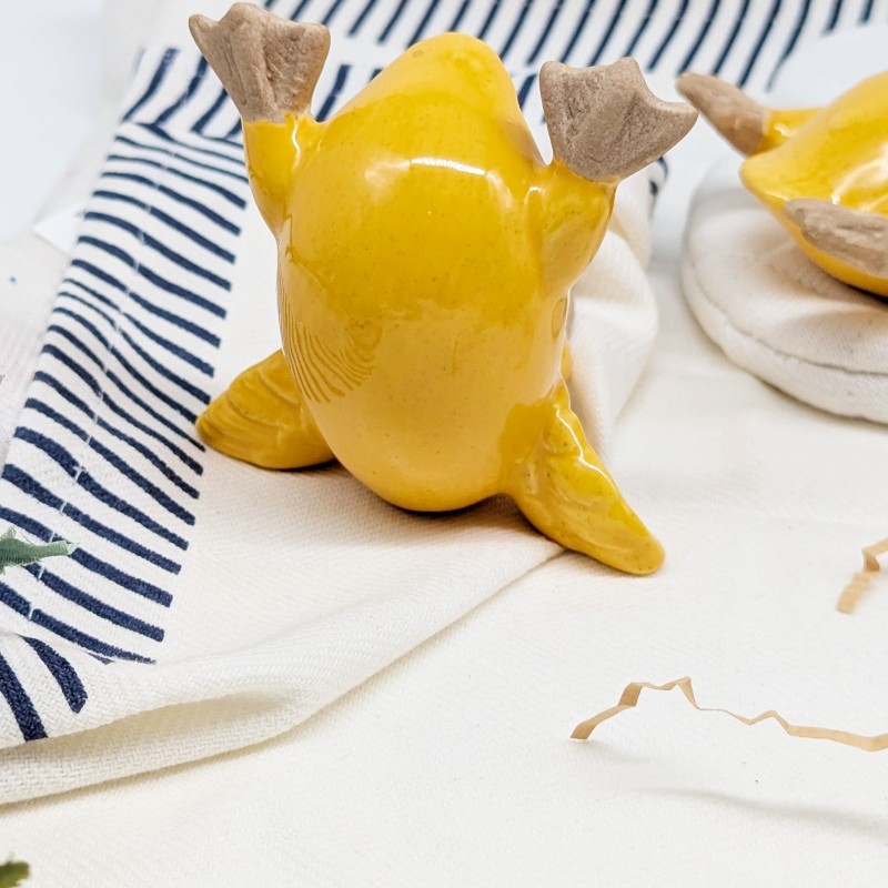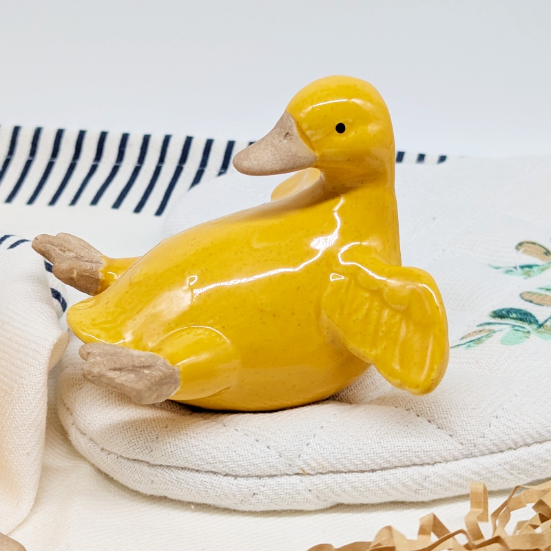 Bring a cheerful pop of colour and charm to your home with this Yellow Ceramic Duck Ornament. With its bright yellow finish and sweet design, this decorative duck adds warmth and personality to any space.