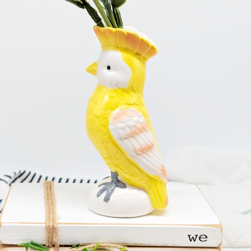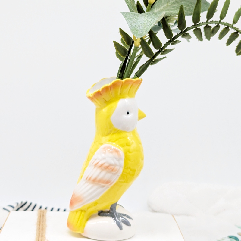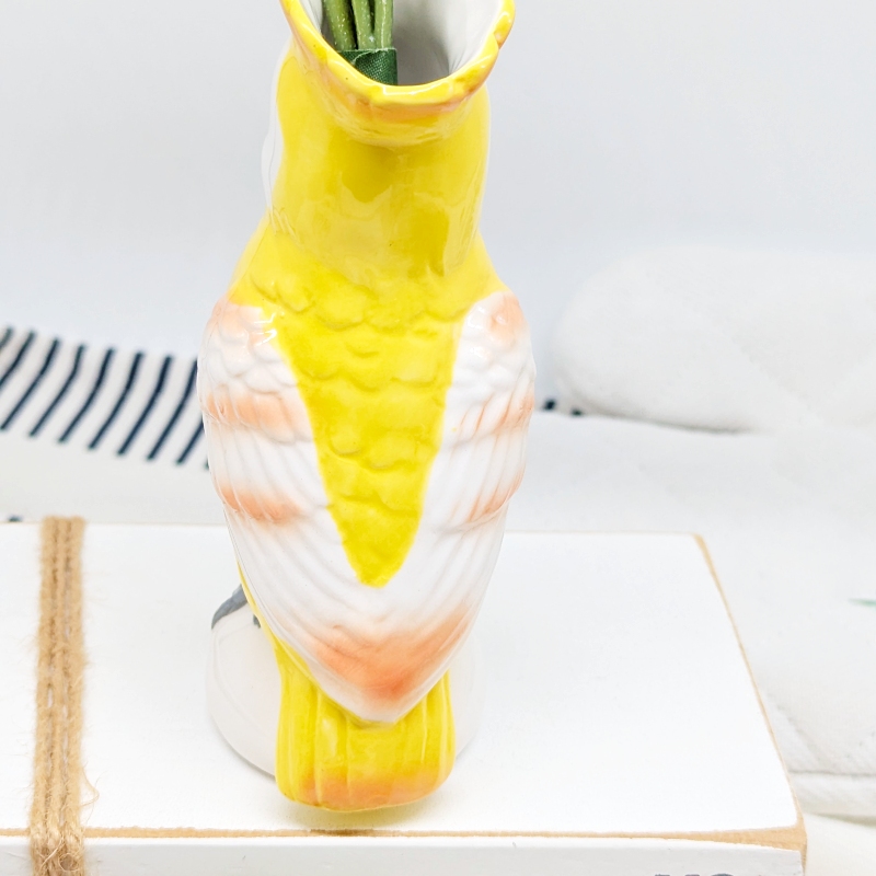 Exhibit your love for greenery in your home or garden with this contemporary style Yellow Parrot Bird Ceramic Vase.